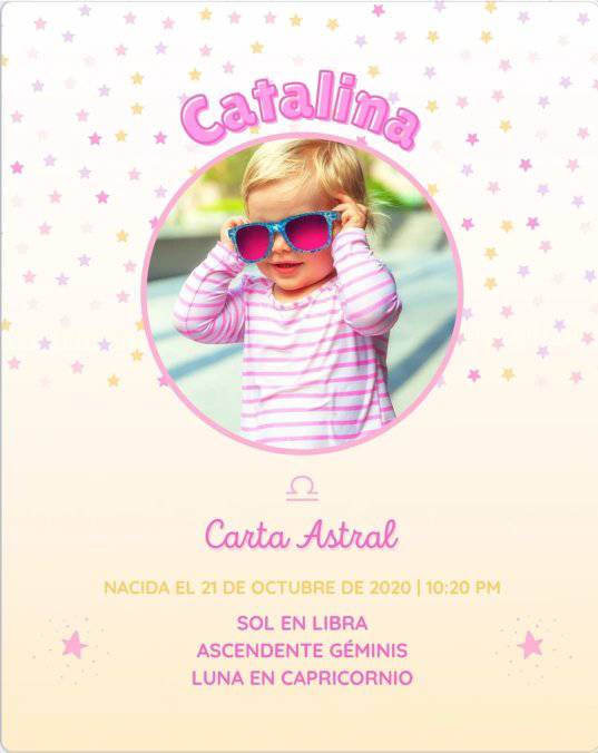 La Carta Natal es la foto del cielo al momento del nacimiento, es decir es el levantamiento de las posiciones de los astros en un momento y lugar determinado del planeta tierra. Desde la Astrología Infantil podemos decir que LA CARTA NATAL INFANTIL es el Proyecto pedagógico que traen los niñ@s para desplegar en esta encarnación. Desde este lugar podemos obtener muchísima información valiosa que nos permita saber que le está pasando a ese niñ@ en relación a sus emociones, aprendizajes y vínculos.